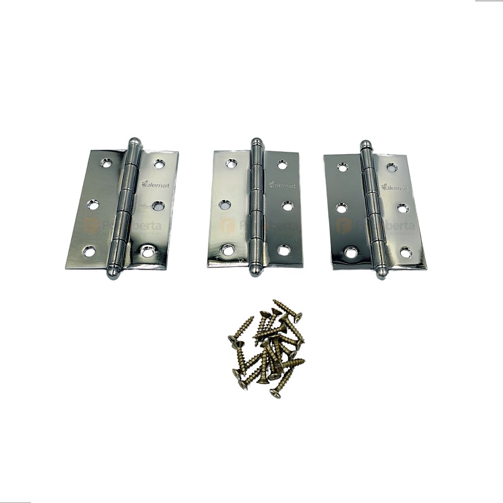 Dobradiça 3 1/2 Cromada Tolemat Bola Jogo Cartela 3 Peças