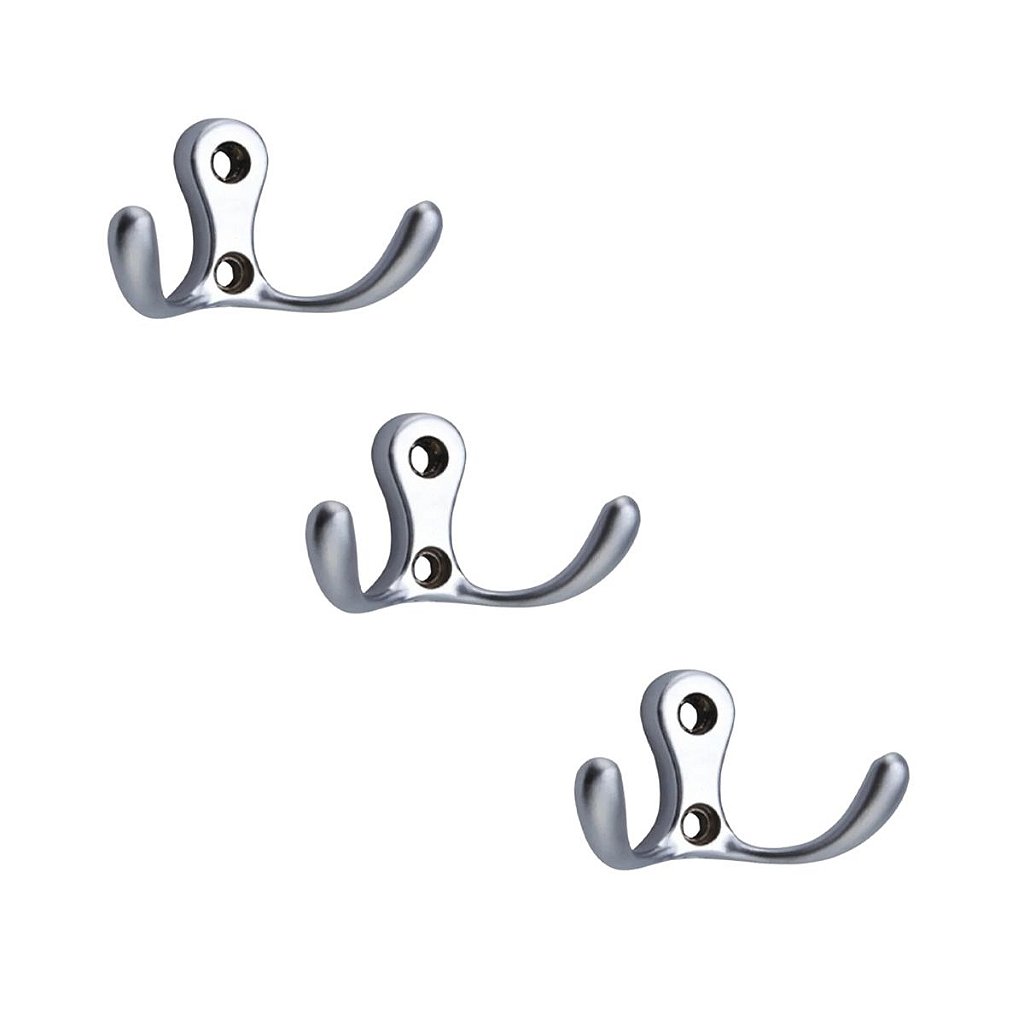 Kit 3 Cabide Gancho Duplo Italy Line 9015 Cromado Polvo