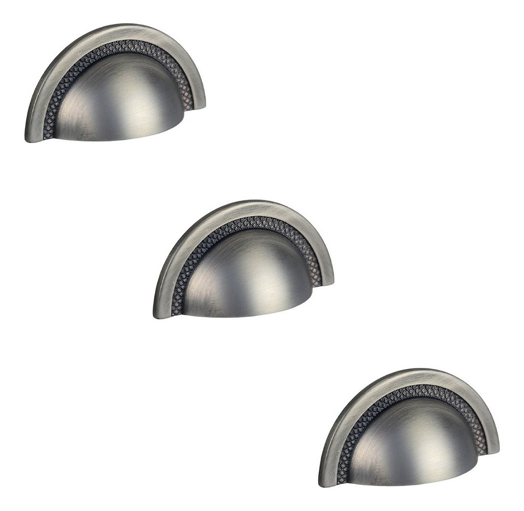 Kit 3 Puxador Shell Zen Niquel Velho Envelhecido 64 Mm
