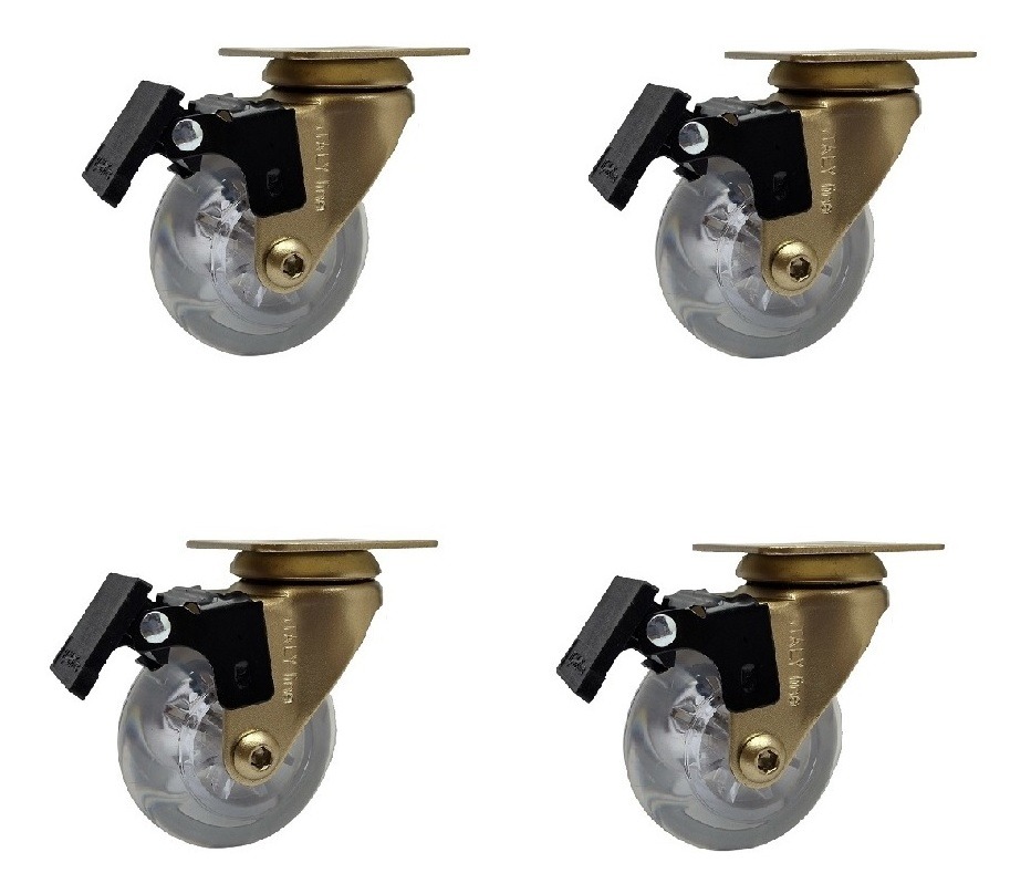 Kit 4 Rodízio Dourado Móveis Silicone 50mm Com Freio Girat.
