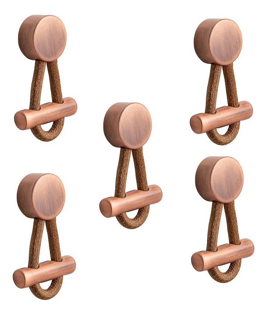 Kit 5 Puxador Oriente Couro Zen Ponto Vecchio Cobre Marrom